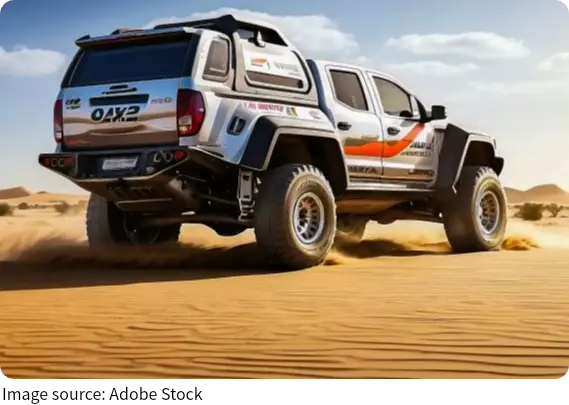 • Use 4WD High: In sand, your 4WD system should be engaged to maximize power distribution to all four wheels. However, switch to the "4WD High" mode for a balance between power and efficiency. This helps you avoid over-revving the engine.