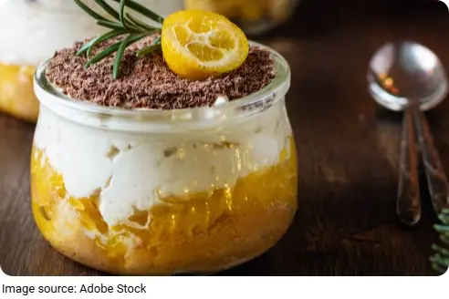 This dessert is built in three layers: a buttery biscuit base, a rich orange cream filling, and an optional decorative topping that adds a fresh final touch.