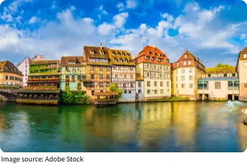 The heart of the city is the Grand Île, a historic island surrounded by the Ill River and recognized as a UNESCO World Heritage Site.