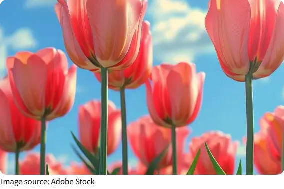 Tulips are one of the most beloved spring flowers, known for their vibrant colors and graceful shape.